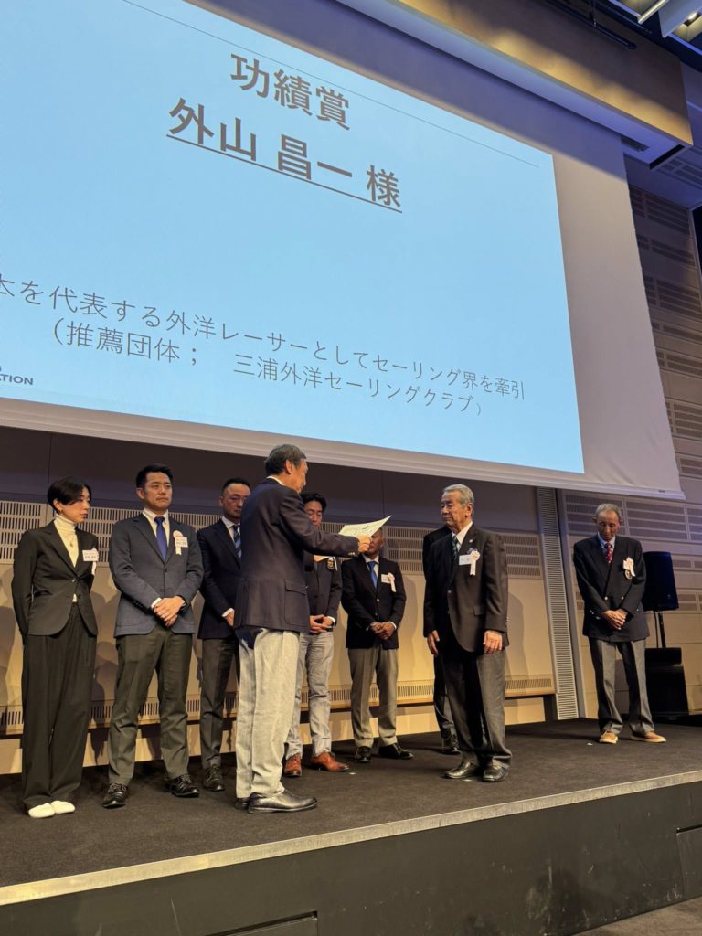 シーボニアヨットクラブ主催で開催された視覚障がい者世界選手権の成功に尽力され、さらに海外で開催されたクルーザーレースへ幾度となく挑戦し続けてこられた外山さん。その情熱と行動力、そして日本ヨット界の発展に寄せた長年の献身が高く評価されました。海を愛し、人を導き、挑戦を続けてこられたその姿勢は、多くのセーラーに勇気と希望を与えています。心よりお祝い申し上げます。